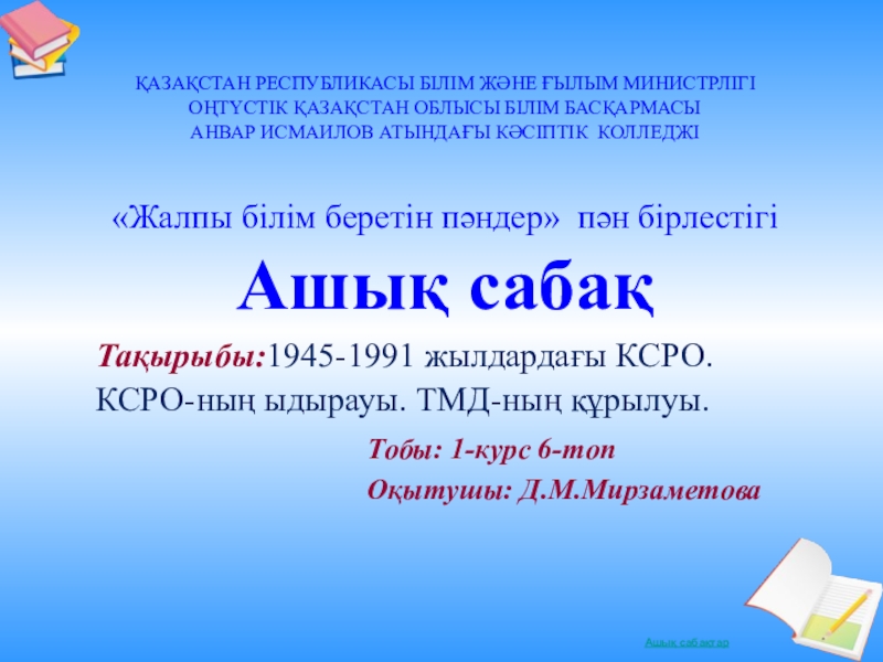 Тақырыбы:1945-1991 жылдардағы КСРО. КСРО-ның ыдырауы. ТМД-ның құрылуы.