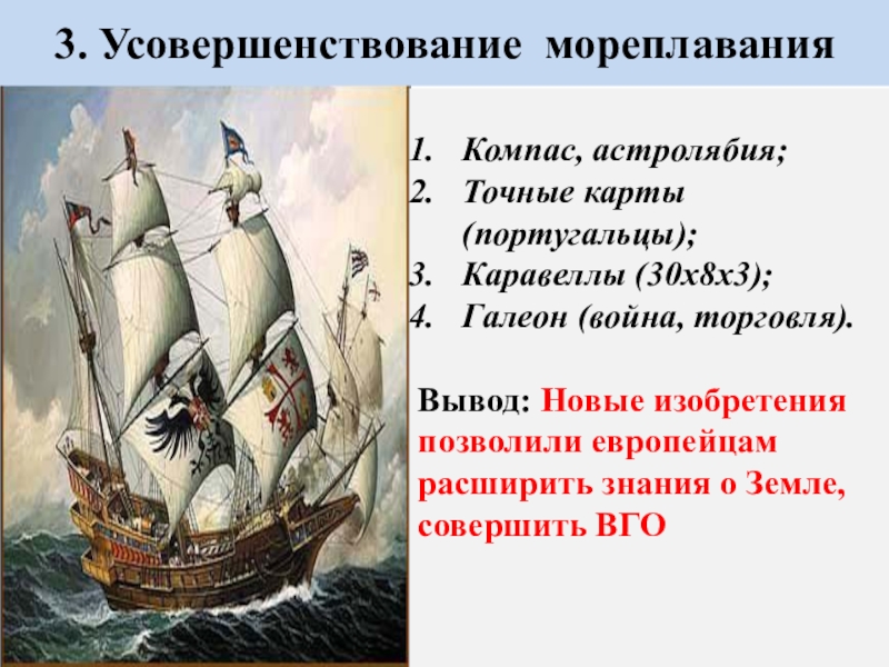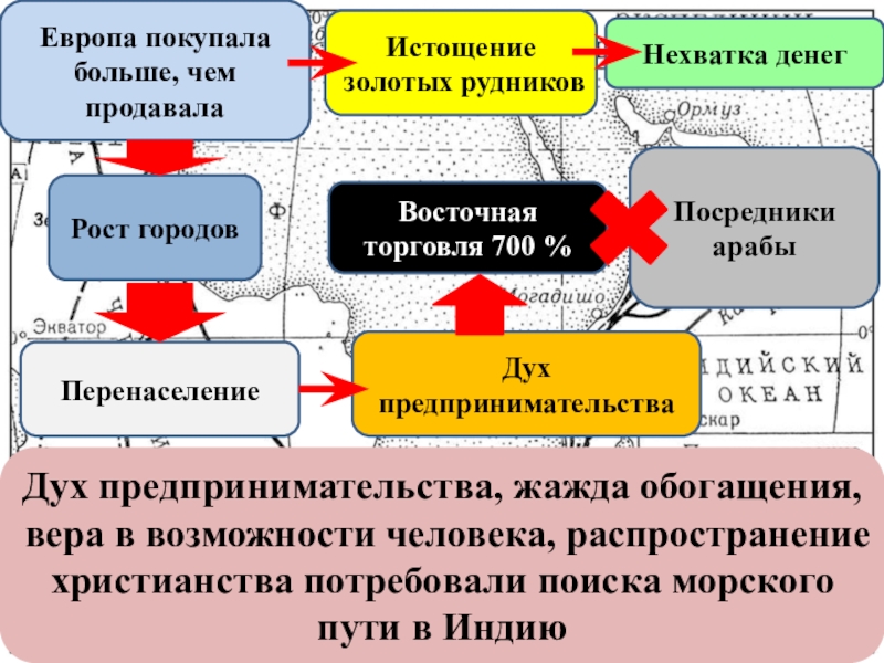 Дух предпринимательства, жажда обогащения, вера в возможности человека, распространение христианства потребовали поиска морского пути в Индию