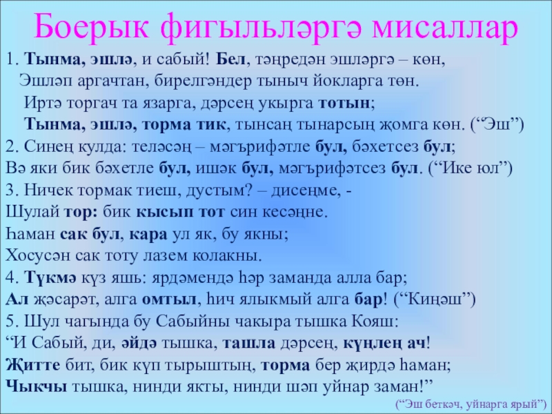 1. Тынма, эшлә, и сабый! Бел, тәңредән эшләргә –