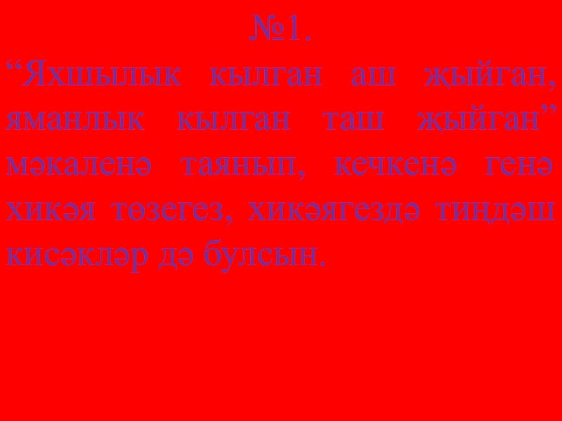 “Яхшылык кылган аш җыйган, яманлык кылган таш җыйган” мәкаленә таянып, кечкенә