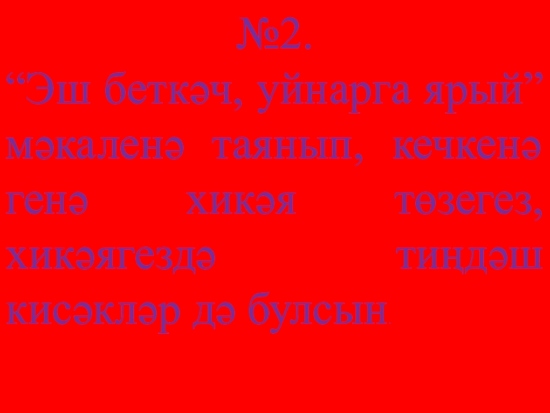 “Эш беткәч, уйнарга ярый” мәкаленә таянып, кечкенә генә хикәя төзегез, хикәягездә