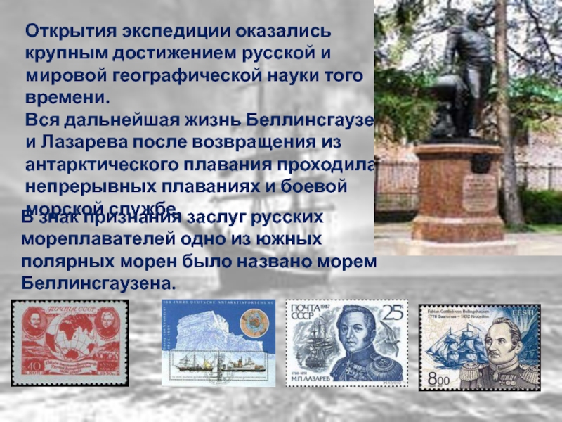Удача сопутствовала «Востоку» и «Мирному». Был подробно описан остров Южная Георгия; установлено, что Земля Сандвича — не один остров, а целый архипелаг, и самый большой остров архипелага Беллинсгаузен назвал островом Кука. Первые предписания инструкции оказались выполнены