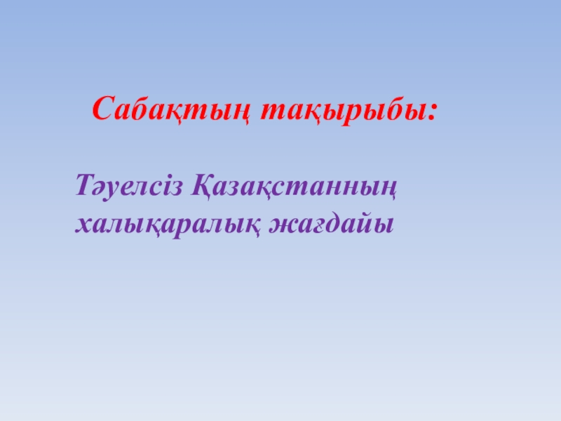 Сабақтың тақырыбы:Тәуелсіз Қазақстанның халықаралық жағдайы