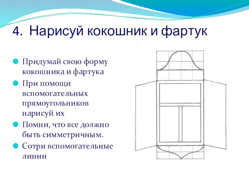 Придумай свой рисунок и укрась ставни, кокошник и фартук