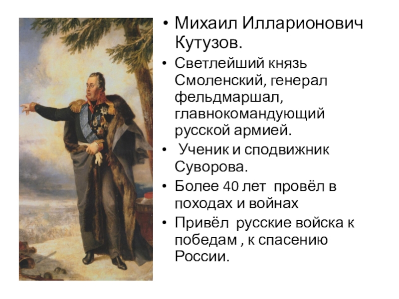 Слайд 7Михаил Илларионович Кутузов.