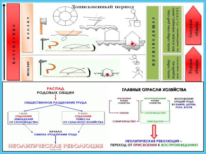 Слайд 10 Неолитическая революция изменила хозяйст-во и быт первобытных людей. У них