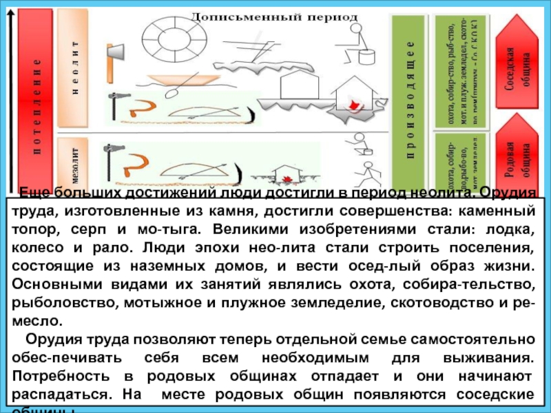 Слайд 8 Еще больших достижений люди достигли в период неолита. Орудия труда,