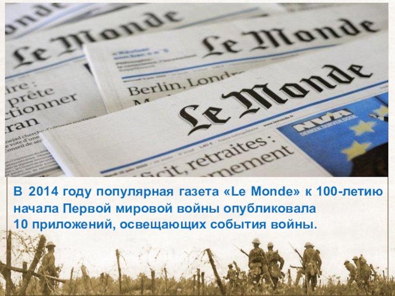 Слайд 21В 2014 году популярная газета «Le Monde» к 100-летию начала Первой