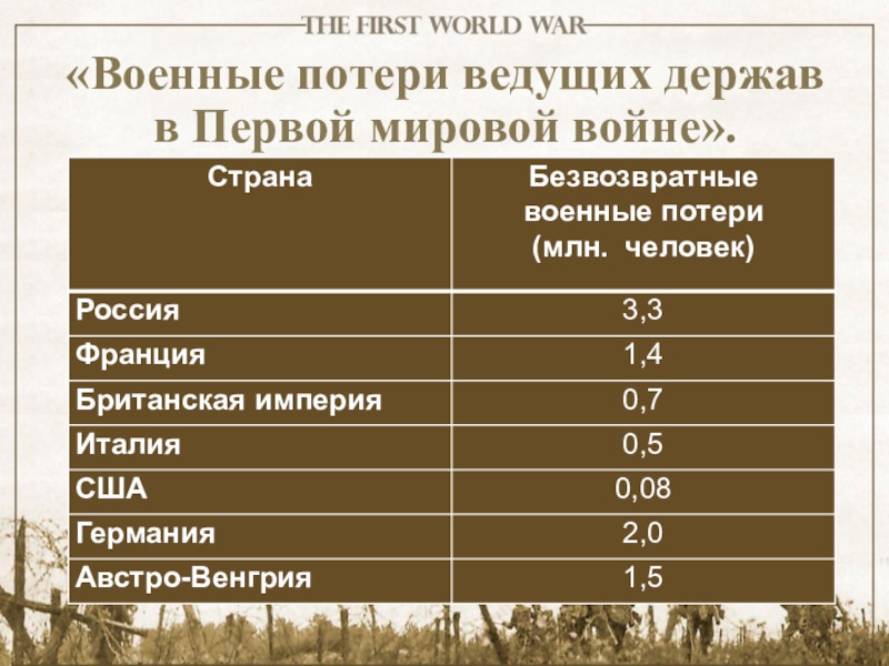 Слайд 19«Военные потери ведущих держав в Первой мировой войне».