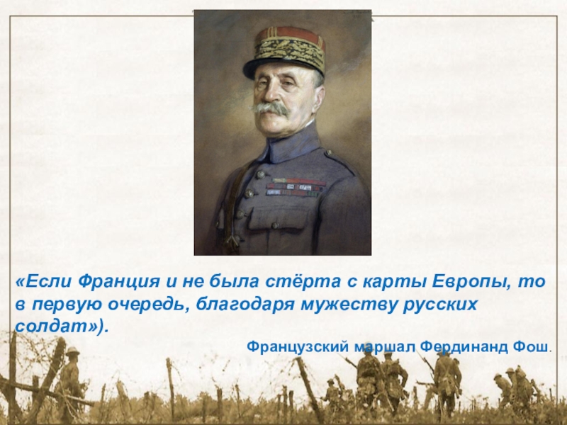 «Если Франция и не была стёрта с карты Европы, то в первую очередь, благодаря мужеству русских солдат»).Французский