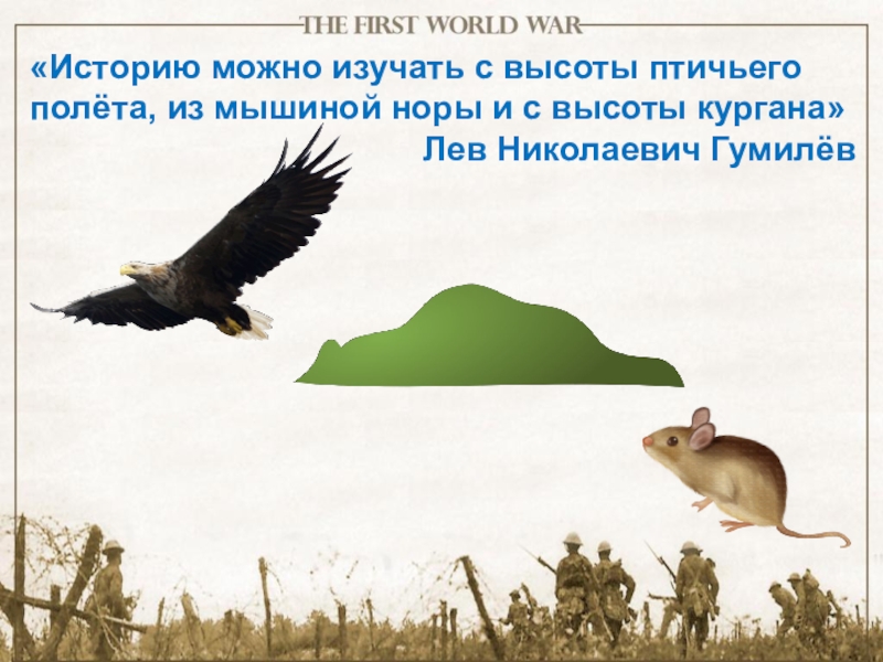 «Историю можно изучать с высоты птичьего полёта, из мышиной норы и с высоты кургана»Лев Николаевич Гумилёв
