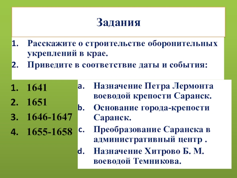 Назначение Петра Лермонта воеводой крепости Саранск.