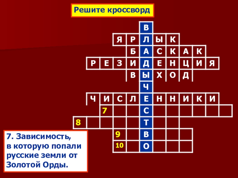 А) находились лишь в вассальной зависимости от Орды;