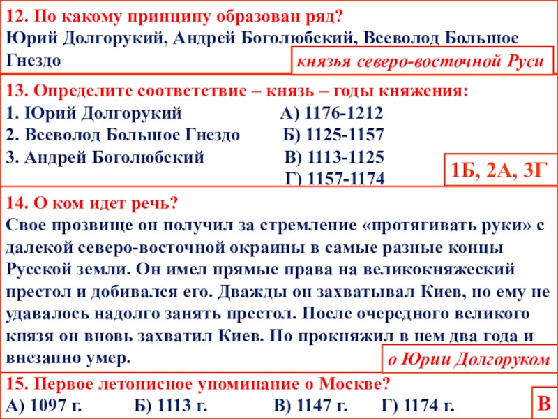 Б) Андрей Боголюбский Г) Роман Мстиславович