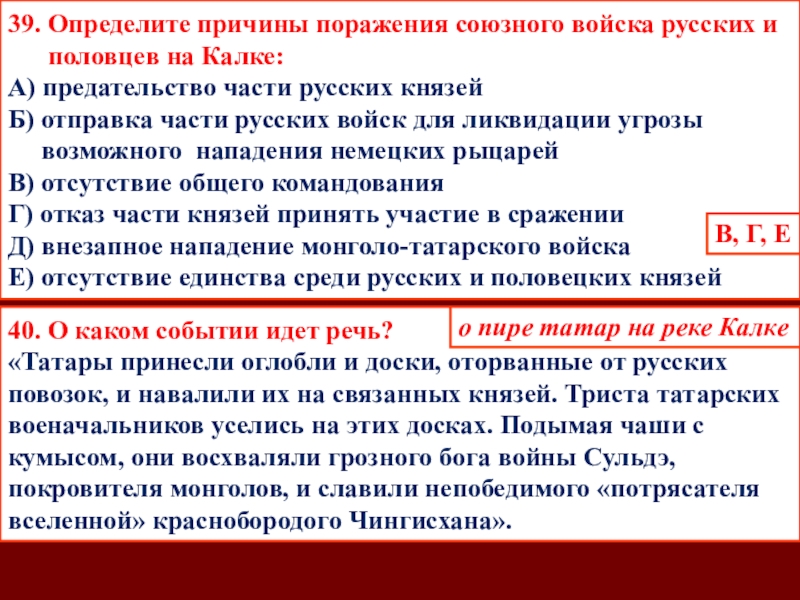 Г) участвовал в сражении на р. Калке против монголо-татар