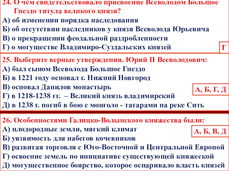23. Выберите верные утверждения. Всеволод III: