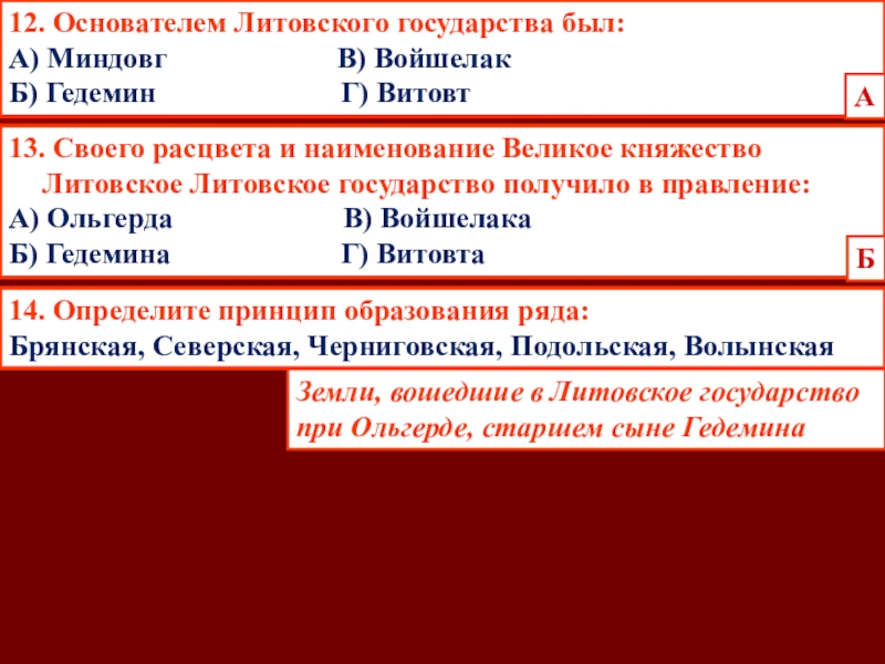 13. Своего расцвета и наименование Великое княжество Литовское Литовское государство получило в правление: