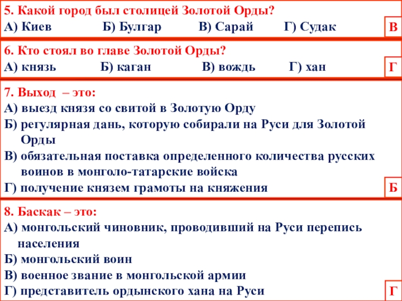 Г) заручиться поддержкой Орды для нападения на Византию