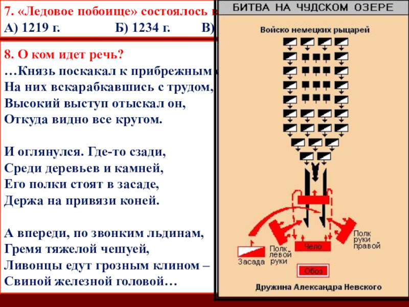 7. «Ледовое побоище» состоялось в: