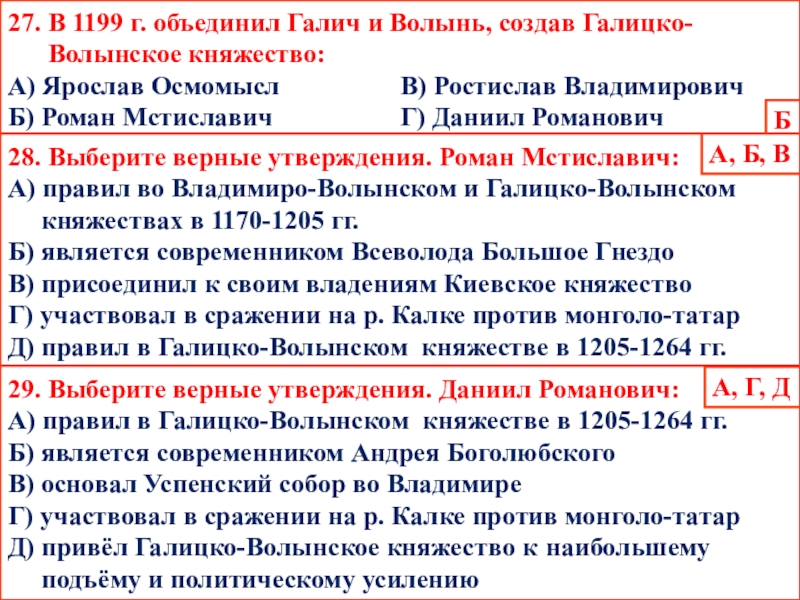 28. Выберите верные утверждения. Роман Мстиславич: