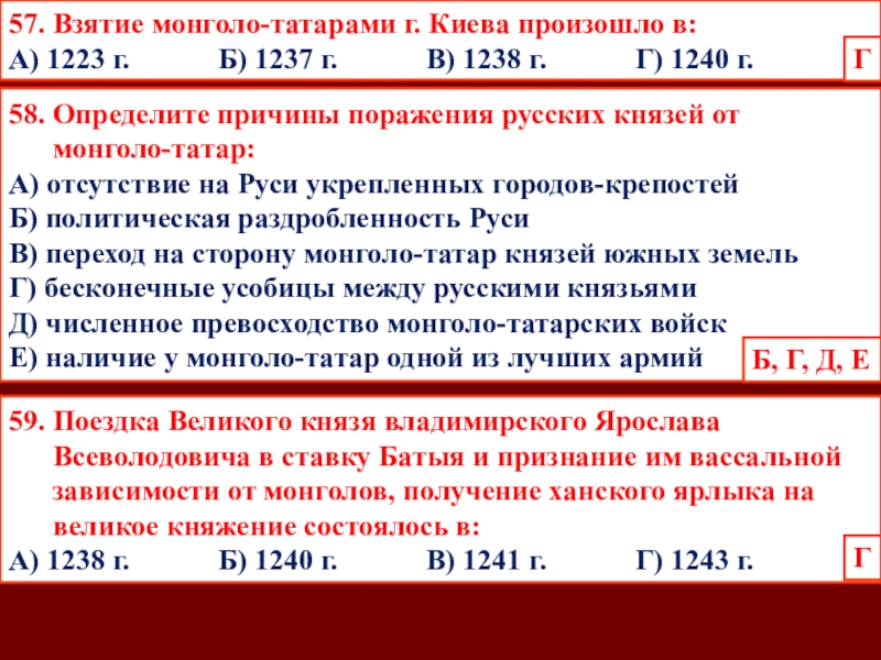 А) 1219 г. Б) 1234 г. В) 1240 г. Г) 1242 г.