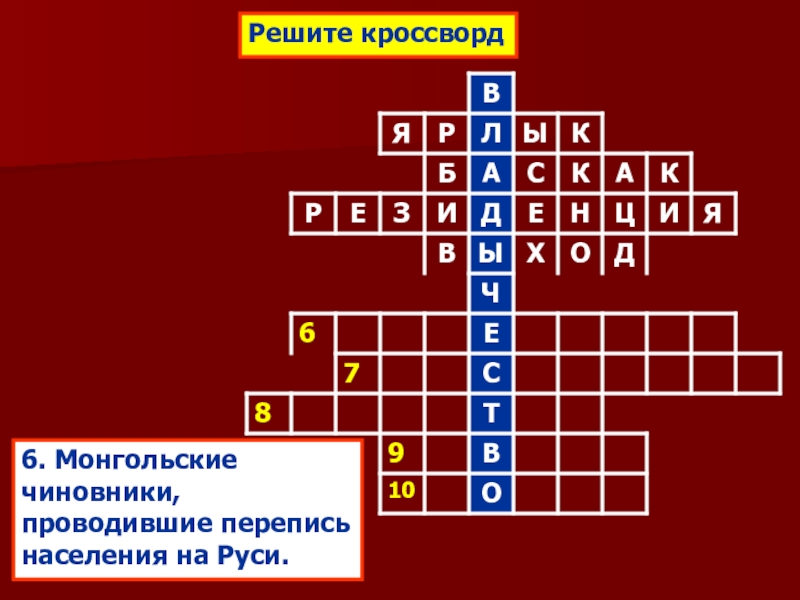 2. Установление на Руси системы баскачества с целью контроля над действиями князей и сбора дани;