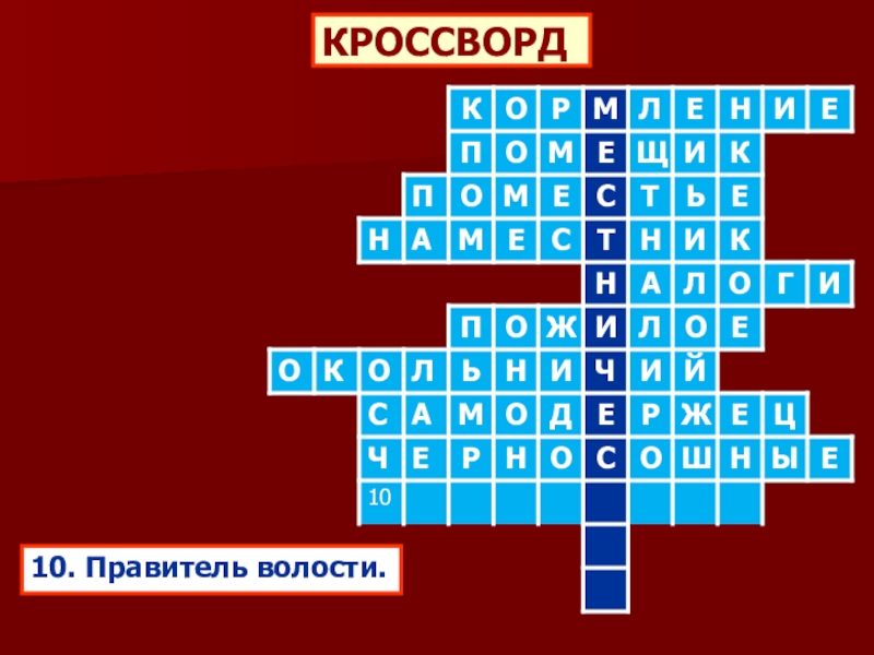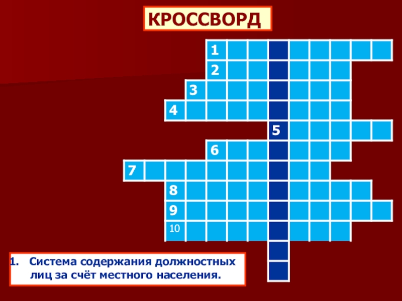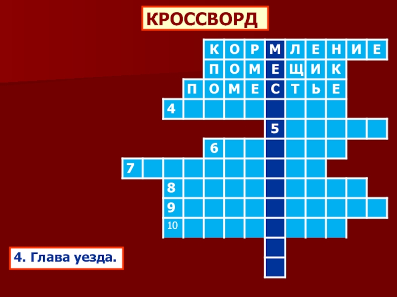 В ходе реформы местного управления была упразднена система __________________ и наместников. В уездах учреждались должности __________ ____________, в посадских общинах местное самоуправление осуществлялось выбранными _____________ ________________. В городах избирались городовые приказчики.