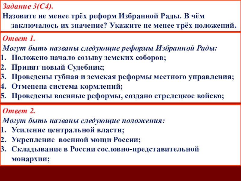 Могут быть названы следующие реформы Избранной Рады: