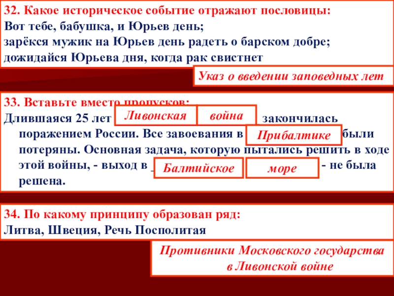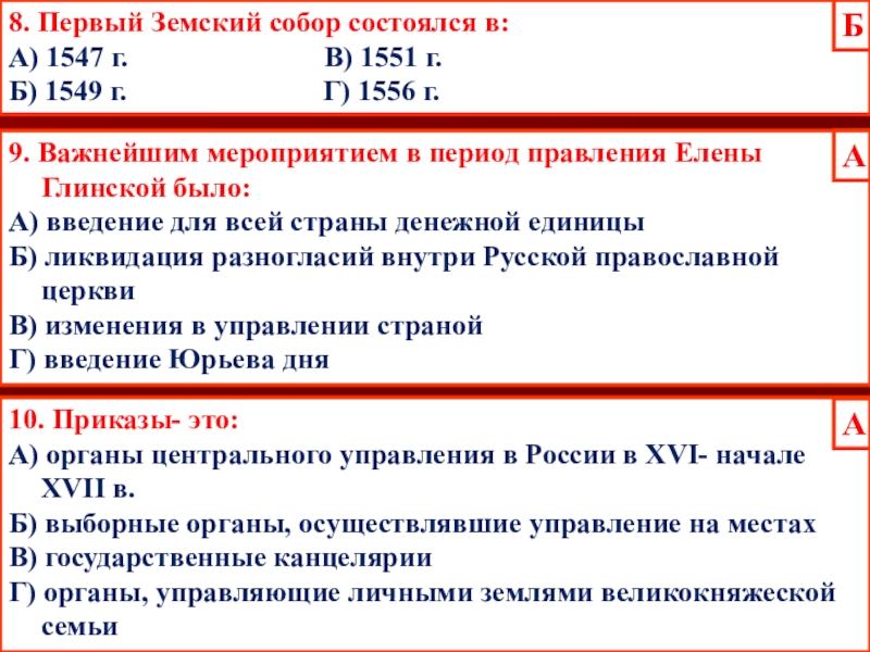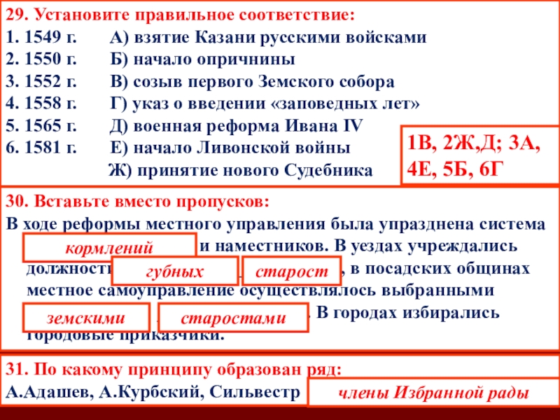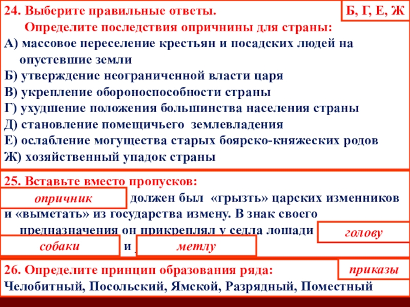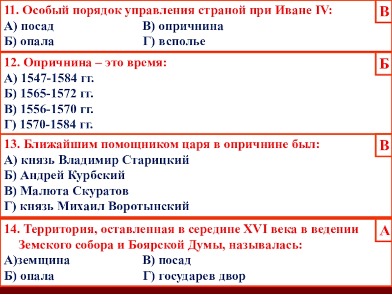 Д) установление опричнины способствовало утверждению неограниченной власти царя