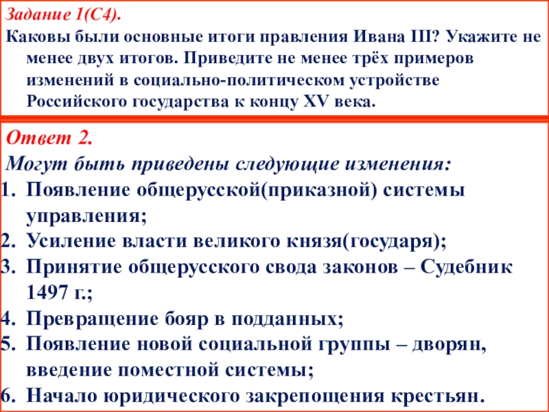 Могут быть названы следующие итоги правления Ивана III :