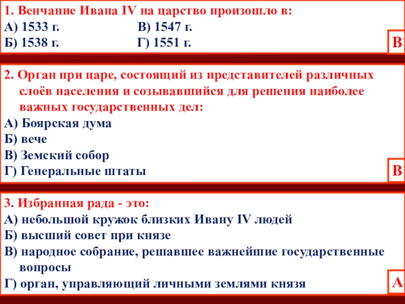 Г) между Иваном IV и членами Избранной рады возникли разногласия из-за Ливонской войны