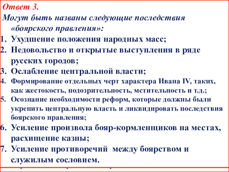 Могут быть названы следующие последствия «боярского правления»: