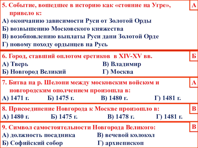 8. Присоединение Новгорода к Москве произошло в: