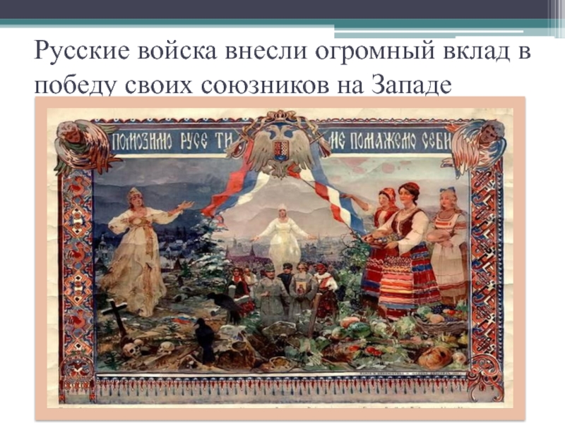 Слайд 32Русские войска внесли огромный вклад в победу своих союзников на Западе