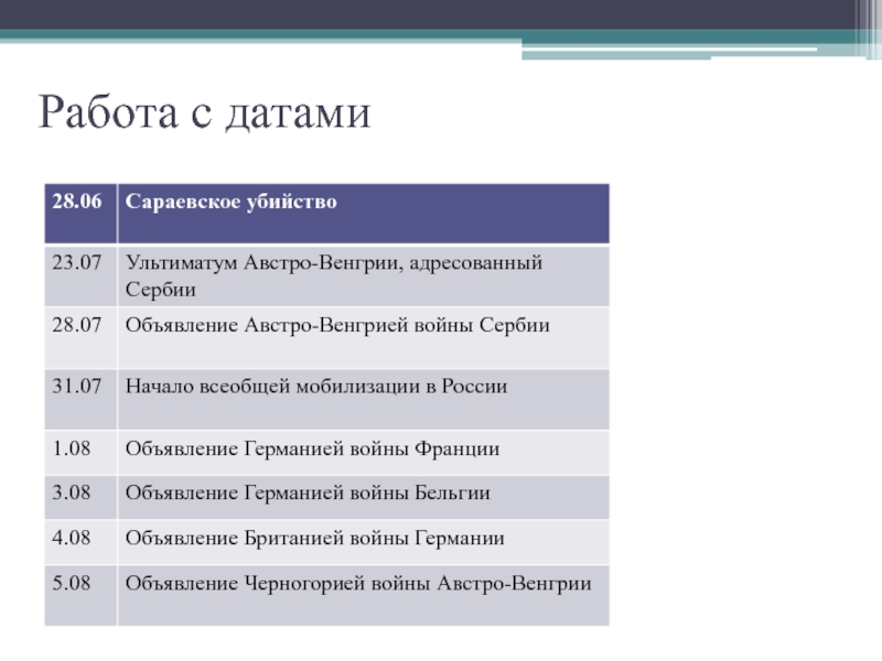 годы Первой мировой войны», а так же их самостоятельную подготовительную работу, повторить и обобщить ход военных действий, доказать ведущую роль России и Восточного фронта в этой войне;