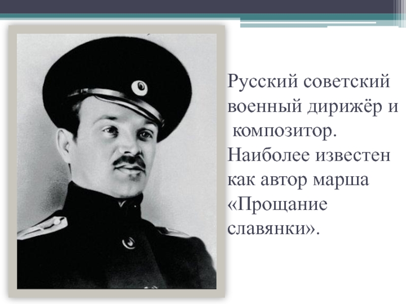 Слайд 46Русский советский военный дирижёр и композитор. Наиболее известен как автор марша «Прощание славянки».