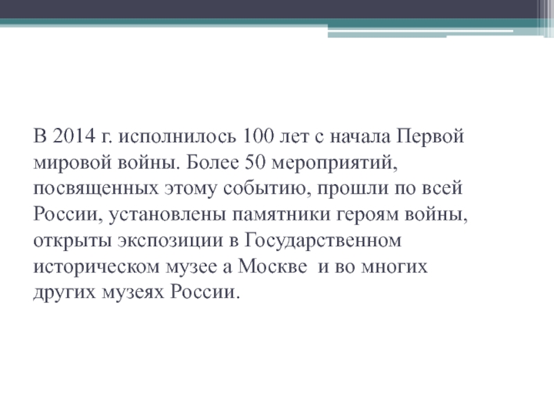 Слайд 1В 2014 г. исполнилось 100 лет с начала Первой мировой войны.