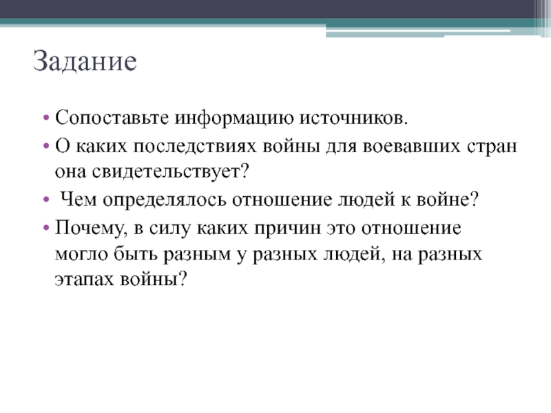 Исторический материал по теме войны должен подбираться таким образом, чтобы воспитывать чувство патриотизма и уважения к самопожертвованию наших предков, к их верности и стойкости; показать, что эта война прошла по каждой семье в России и оказала огромное влияние на судьбу всего ХХ века.