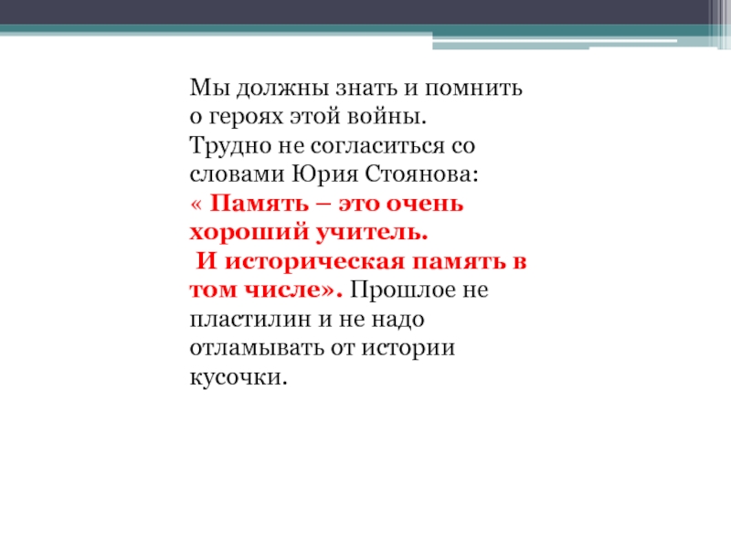 Слайд 52Мы должны знать и помнить о героях этой войны.