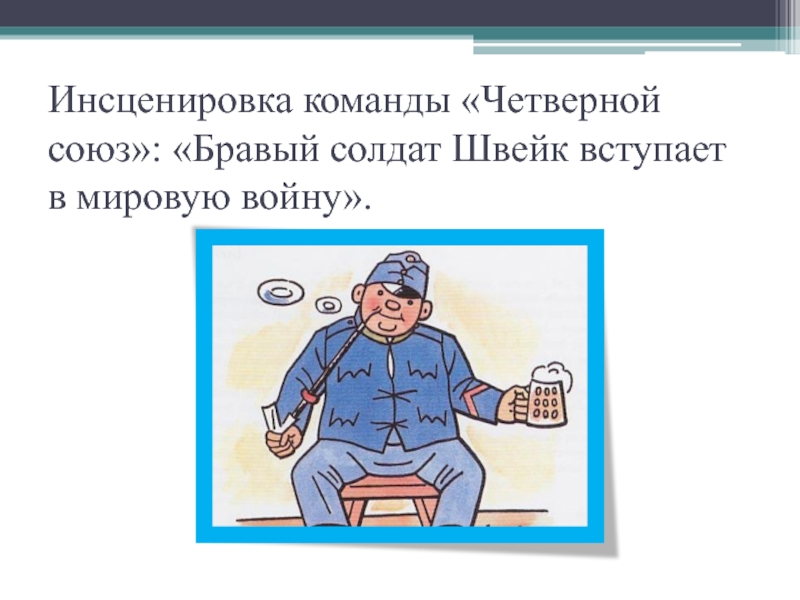 Слайд 24Инсценировка команды «Четверной союз»: «Бравый солдат Швейк вступает в мировую войну».