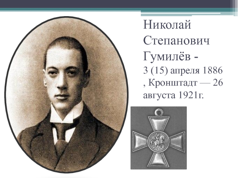 Слайд 23Николай Степанович Гумилёв - 3 (15) апреля 1886, Кронштадт — 26 августа 1921г.