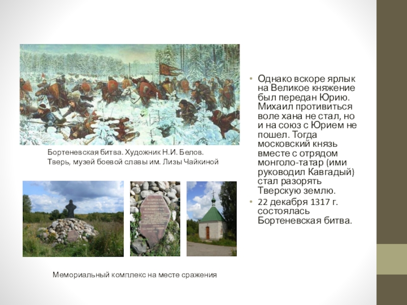 Бортеневская битва. Художник Н.И. Белов. Тверь, музей боевой славы им. Лизы Чайкиной