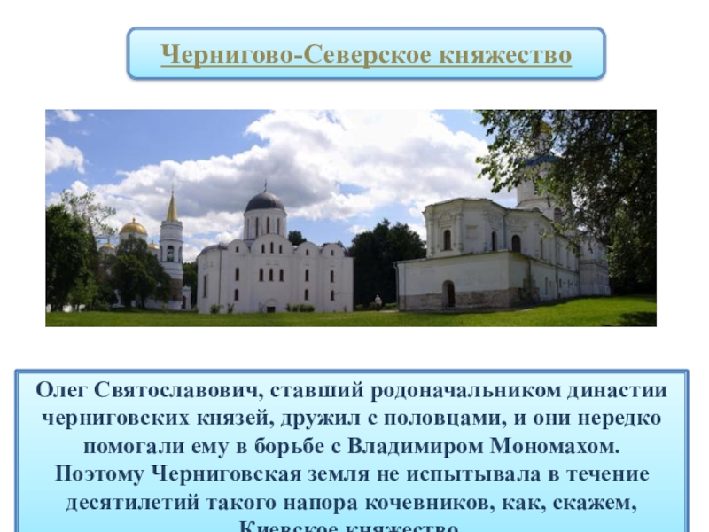 Слайд 27Олег Святославович, ставший родоначальником династии черниговских князей, дружил с половцами, и