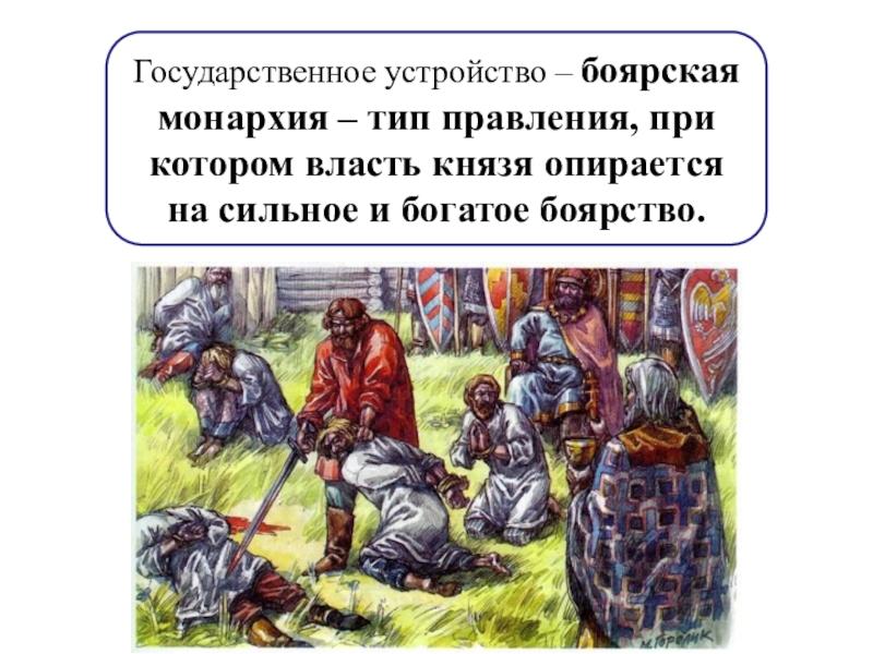 Это была боярская монархия – тип правления, при котором власть князя опирается на сильное и богатое боярство.