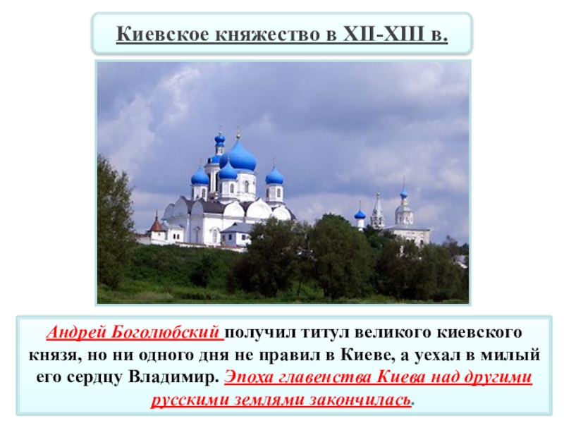Слайд 16Андрей Боголюбский получил титул великого киевского князя, но ни одного дня