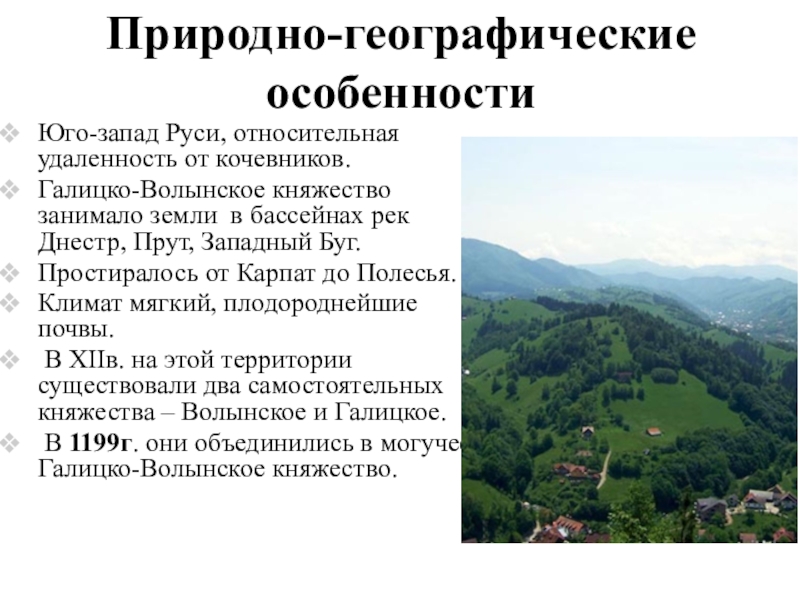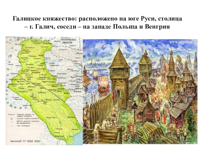 Галицкое княжество: расположено на юге Руси, столица – г. Галич, соседи