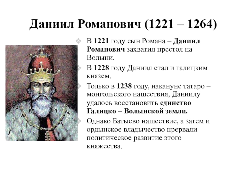 Слайд 52Его политику продолжил сын — Даниил Романович. Даниил был выдающимся государственным