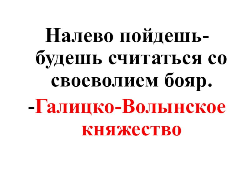 Слайд 74Налево пойдешь- будешь считаться со своеволием бояр.