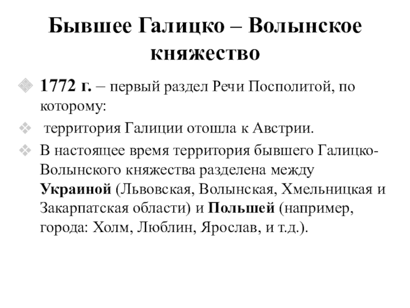 В ХIIв. на этой территории существовали два самостоятельных княжества – Волынское и Галицкое.