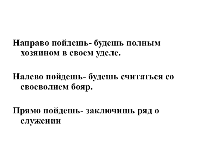 Слайд 73Направо пойдешь- будешь полным хозяином в своем уделе.